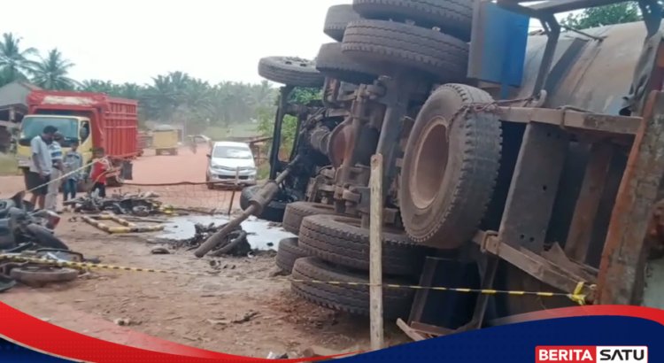THOLANG BAWANG, BERISATU.COM – Unit truk tank runtuh dalam selusin sepeda motor di pintu masuk PT Indo Lampung ke desa Astra Castra. Karena kegagalan truk rem, kecelakaan itu menewaskan seseorang dan merusak lusinan sepeda motor.